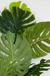Yoğun Monstera yaprakları ile gerçekçi bir görünüm elde edilmiştir.
