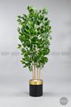 Biçiçek Yapay Benjamin Ağacı 140Cm Siyah Gold Metal Saksıda