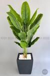 Saksı içerisinde yer alan yapay muz ağacı, gerçekçi görünümüyle dikkat çeker ve bahçenize veya balkonunuza estetik bir hava katar