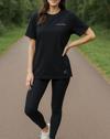 - Yüksek bel tayt ve uyumlu üst parça kombinasyonuyla şık bir görünüm sunar.