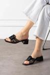 Woggo Günlük Tokalı 4 Cm Topuklu Jelli Kadın Terlik Ary 67-789 Siyah