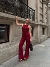MAI STUDIOS CO. Nagmetah Sırt Pencereli Bordo Yelek Pantolon Takım