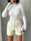 Şık ve modern tasarımıyla dikkat çeken Krem Beli Lastikli Çıtçıtlı Deri Şort, gardırobunuzun vazgeçilmezi olmaya aday!