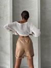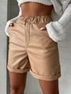 Beli lastikli duble paça deri şort bej w24755, şık ve rahat tasarımıyla öne çıkıyor. İster günlük şıklıkta kullanın, ister özel bir davette. İşte ürünün özellikleri: