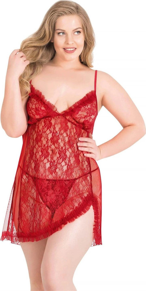 Bicomi Büyük Beden Kırmızı Kısa Tül Gecelik 3026
