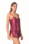 Bicomi Bordo Saten Gecelik Babydoll Şort Takımı