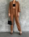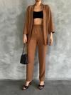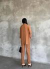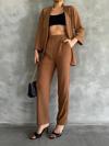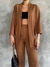 KAZAX markasının bürümcük kumaş yakımıyla tasarlanan kadın giyim takımı, şıklık ve rahatlığı bir arada sunuyor.