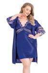 Bicomi Büyük Beden Saks Kısa İkili Saten Sabahlık Gecelik Takımı 6155