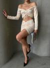 Şıklığı ve rahatlığı bir arada sunan Büzgülü Etek Bluz Takım Bej S24709, günlük hayatta şıklığı yakalamak isteyen kadınların favorisi olacak.