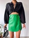 Şıklığı ve rahatlığı bir arada arayan kadınların tercihi olan Cep Detaylı Oval Kapaklı Deri Etek Yeşil, şıklığı seven kadınların gardırobunda mutlaka bulunmalı.