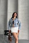 Modern tasarımıyla öne çıkan Çift Cepli Kol Katlamalı Kar Yıkama Crop Kot Ceket Buz Mavi D2000, gardırobunuzun vazgeçilmez parçalarından biri olmaya aday.