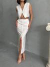 PayBuy Şık Kadın Kolsuz Örme Etek Üst Takım Geniş Paça Polyester Günlük Kombin Özenle Seçilmiş