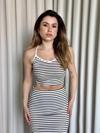 Şıklık ve rahatlığı bir arada sunan çizgili etek crop takım, gardırobunuzun vazgeçilmezi olmaya aday!