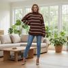 İspanyol tarzını yansıtan çizgili boğazlı triko kazak, gardırobunuzun vazgeçilmezi olmaya aday! Hem şık hem de rahat yapısıyla günlük kullanıma uygun olan bu kahve beyaz kazak, farklı kombinler oluşturmanıza olanak sağlar.