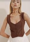 Bu sezonun trendi olan çizgili krep düğmeli yelek kahve rengiyle gardırobunuza şıklık katacak bir parça. S3395 modeli ile şık ve rahat bir görünüm elde edebilirsiniz.