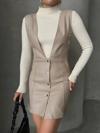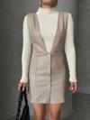 Bu şık deri jile elbise, gardırobunuzu tamamlayacak bir parça olacak. Bej rengi ile klasik ve şık bir görünüm sunarken, deri detayları ise tarzınıza modern bir dokunuş katıyor.
