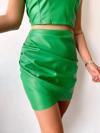 Derinin şıklığı ile Drapeli Deri Etek Yeşil S24771, kadınların gardırobunda fark yaratacak bir parça. Kaliteli deri malzemesi ve detaylarıyla göz kamaştıran bu etek, şıklığı ve rahatlığı bir arada arayanların tercihi olacak.