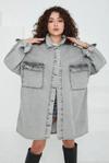 KAZAX Düz Gömlek Yaka Kadın Gri Kuş Gözü Cepli Kot Ceket, şıklığı ve konforu bir arada sunar. Günlük giyimlerinizde rahatlıkla tercih edebilirsiniz.