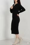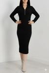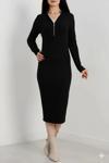 Şıklık ve zarafeti bir arada sunan Fermuar Detaylı Fitilli Şardonlu Elbise siyah rengiyle şıklığınızı tamamlıyor.