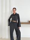 - Gömlek yaka detayı ve kaplama düğmeleri ile fark yaratır.