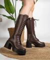 Biçomi Guay Kahverengi Cilt Bağcıklı Topuklu Çizme