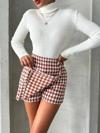 CH markasının iki düğmeli kaz ayağı desenli şort eteği, şıklık ve rahatlığı bir arada sunuyor. İnce kumaşı ile yaz aylarında serin kalmanızı sağlarken, bordo ve beyaz rengin harika kombinasyonuyla tarzınızı ön plana çıkarmanıza yardımcı olur.