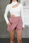 İki düğmeli şort etek pembe h26414, şıklığı ve rahatlığı bir arada sunuyor. Hem şortun rahatlığı hem de eteğin şıklığı ile kombinlerinizi tamamlayabilirsiniz.