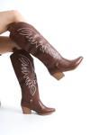 RM-505 Kahverengi Topuklu Fermuarlı Günlük Kadın Çizme - Image 1