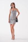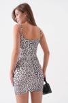Kadın siyah leoparlı ince askılı likralı elbise s8105