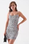 Biçomi Kadın siyah leoparlı ince askılı likralı elbise s8105