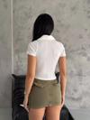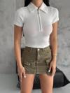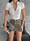 Biçomi kaşkorse yaka fermuarlı bluz beyaz