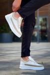 Morotonom KB-X8 Kuback Beyaz Cilt Sarı Süet Detaylı Beyaz Yüksek Taban Günlük Spor Ayakkabı