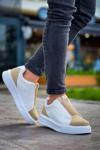 Biçomi KB-007 Kuback Beyaz Bej Yüksek Taban Tek Bant Bağcıksız Günlük Erkek Ayakkabı
