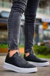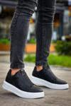 KB-007  Kuback Siyah Beyaz Yüksek Taban Tek Bant Bağcıksız Günlük Erkek Ayakkabı