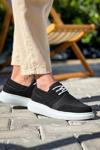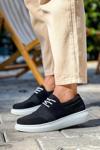Biçomi KB-042 Kuback Bağcıklı Siyah Deri Tozu Beyaz Taban Günlük Erkek Ayakkabı