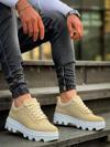 Biçomi KB-056 Kuback Bej Süet Beyaz Yüksek Taban Günlük Spor Ayakkabı