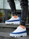 Biçomi KB-056 Kuback Beyaz Mavi Detaylı Beyaz Yüksek Taban Günlük Spor Ayakkabı