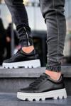 Biçomi KB-056 Kuback Siyah Cilt Beyaz Yüksek Taban Günlük Spor Ayakkabı