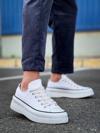 Biçomi KB-CX-3 Kuback Kısa Beyaz Keten Beyaz Yüksek Taban Spor Ayakkabı