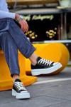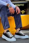 Biçomi KB-CX-3 Kuback Kısa Siyah Keten Beyaz Yüksek Taban Spor Ayakkabı
