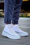 Biçomi KB-CX-3 Kuback Uzun Beyaz Keten Beyaz Yüksek Taban Spor Ayakkabı