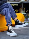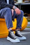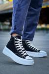 Biçomi KB-CX-3 Kuback Uzun Siyah Keten Beyaz Yüksek Taban Spor Ayakkabı