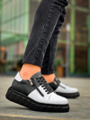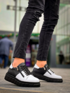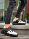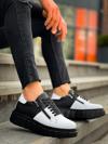 Biçomi KB-X155 Kuback Beyaz Cilt Siyah Cilt Detaylı Siyah Yüksek Taban Günlük Spor Ayakkabı