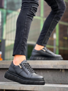 Biçomi KB-X155 Kuback Siyah Cilt Detaylı Siyah Yüksek Taban Günlük Spor Ayakkabı