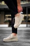 Biçomi KB-X502 Kuback Bej Süet Yüksek Bej Taban Bağcık Detaylı Lastikli Günlük Erkek Ayakkabı