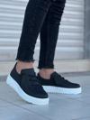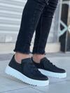 Biçomi KB-X502 Kuback Siyah Cilt Yüksek Beyaz Taban Bağcık Detaylı Lastikli Günlük Erkek Ayakkabı