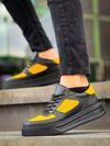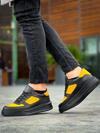 Biçomi KB-X8 Kuback Siyah Sarı Cilt Yüksek Taban Günlük Spor Ayakkabı