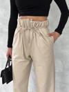 Şıklığı ve rahatlığı bir arada sunan Kendinden İnce Kemerli Deri Pantolon Bej, gardırobunuzun vazgeçilmezi olmaya aday! İşte bu pantolonun özellikleri:
