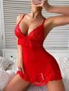 Kırmızı Dantel İşlemeli İnce Askılı Likralı Fantezi Tül Gecelik, esnek likralı kumaşı sayesinde vücudu nazikçe sarar ve konforlu bir kullanım sunar. Hafif tül kumaşı ve zarif dantel detaylarıyla feminen ve baştan çıkarıcı bir görünüm sağlar.