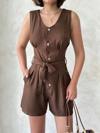 Şıklığı ve rahatlığı bir arada arayanların tercihi kuşaklı şortlu tulum, gardırobunuzun favorisi olmaya aday!